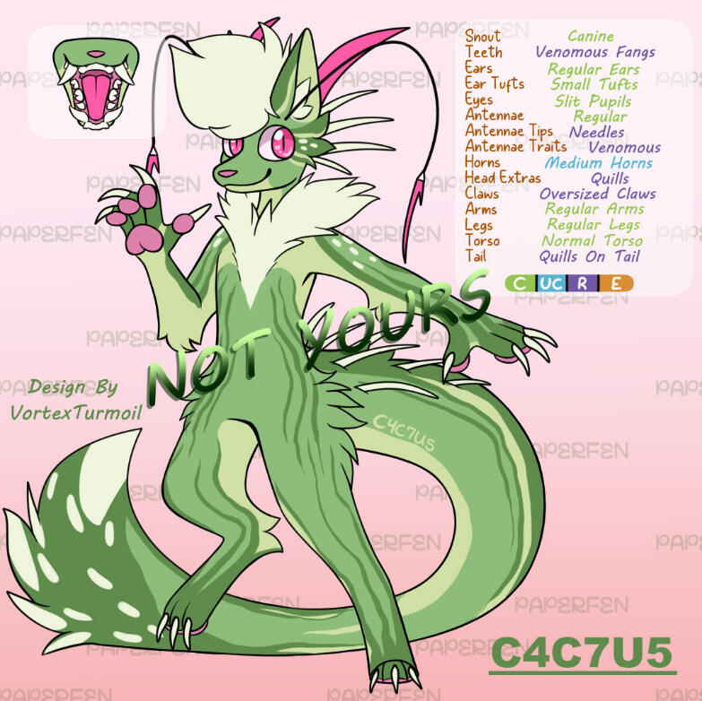 The following covers all officially created adopts for the Viritail species. This includes its subspecies, the Moontails. This TOS only covers Species Designers that are registered with PaperFen. Any other minor adopt artists possibly allowed in the future must operate under their own TOS.PaymentDesigners of an adopt will be paid in full before the purchaser receives the un-watermarked version of the adopt ref. Payment will be made through the designer's chosen method.TermsWe have the right to refuse any adopt purchase for any reason. No means no, and our refusal reason does not need to be stated.You must credit the designer of the adopt for its creation.You may use the character’s design to commission or create additional artwork, stories, fursuits, etc, as long as the original designer is credited for its creation at all times.For commercial usage, please contact the designer you purchased from to discuss their specific terms.You may not sell adopts that you have purchased from our designers at a higher value than the original price UNLESS you have made or commissioned art of said character. The selling price must always be the sum of the value of all art associated with the character.You may request minor edits to the adopt ref, and it is up to the individual designer to decide whether these edits must be paid for or are minor enough to be free. The designer may choose to not take on the edits at all.Characters you purchase from us that are canonically over 18 may be used in a nsfw setting, however the species nsfw rules MUST be followed. If this applies to you, please see those rules in our discord server.Characters you purchase from us may NOT be used to promote harmful messages, including but not limited to homophobia, transphobia, racism, etc. If the designer is uncomfortable with how you are using their design, they have the right to formally request the return of character ownership.You may not use the design, or anything relating to the Viritail species in any ai artwork generation. If we find you to be using ai generation to create works with our designs and creations, we have the right to formally request the return of character ownership.These terms will be automatically agreed to upon purchasing an adopt from us, but to confirm you have read them, the code word is "Rye".If our TOS has been broken…A refund may be requested by our designers if any of our terms have been broken by the purchaser. This refund will be paid in full, but depending on the payment processor, fees may be taken during the transaction. This refund returns all character ownership back to the original designer.We can not force you to return a character, nor can we take back a character’s design without a refund, but we hope that you will comply with the wishes of the designer.Depending on how severe the terms have been broken, you may either be blacklisted from purchasing from us again, or you may be outright banned from our community.