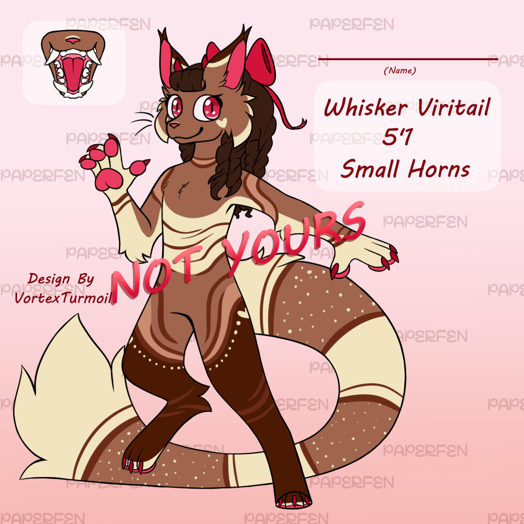 The following covers all officially created adopts for the Viritail species. This includes its subspecies, the Moontails. This TOS only covers Species Designers that are registered with PaperFen. Any other minor adopt artists possibly allowed in the future must operate under their own TOS.PaymentDesigners of an adopt will be paid in full before the purchaser receives the un-watermarked version of the adopt ref. Payment will be made through the designer's chosen method.TermsWe have the right to refuse any adopt purchase for any reason. No means no, and our refusal reason does not need to be stated.You must credit the designer of the adopt for its creation.You may use the character’s design to commission or create additional artwork, stories, fursuits, etc, as long as the original designer is credited for its creation at all times.For commercial usage, please contact the designer you purchased from to discuss their specific terms.You may not sell adopts that you have purchased from our designers at a higher value than the original price UNLESS you have made or commissioned art of said character. The selling price must always be the sum of the value of all art associated with the character.You may request minor edits to the adopt ref, and it is up to the individual designer to decide whether these edits must be paid for or are minor enough to be free. The designer may choose to not take on the edits at all.Characters you purchase from us that are canonically over 18 may be used in a nsfw setting, however the species nsfw rules MUST be followed. If this applies to you, please see those rules in our discord server.Characters you purchase from us may NOT be used to promote harmful messages, including but not limited to homophobia, transphobia, racism, etc. If the designer is uncomfortable with how you are using their design, they have the right to formally request the return of character ownership.You may not use the design, or anything relating to the Viritail species in any ai artwork generation. If we find you to be using ai generation to create works with our designs and creations, we have the right to formally request the return of character ownership.These terms will be automatically agreed to upon purchasing an adopt from us, but to confirm you have read them, the code word is "Rye".If our TOS has been broken…A refund may be requested by our designers if any of our terms have been broken by the purchaser. This refund will be paid in full, but depending on the payment processor, fees may be taken during the transaction. This refund returns all character ownership back to the original designer.We can not force you to return a character, nor can we take back a character’s design without a refund, but we hope that you will comply with the wishes of the designer.Depending on how severe the terms have been broken, you may either be blacklisted from purchasing from us again, or you may be outright banned from our community.